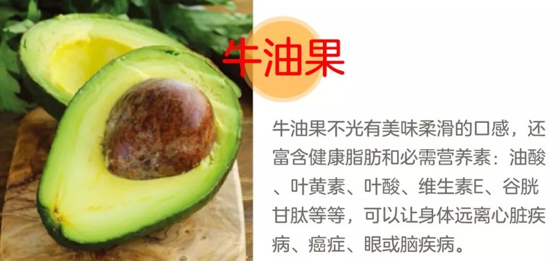单不饱和脂肪——你心脏的英雄。它们可以降低低密度脂蛋白胆固醇,提高高密度脂蛋白,同时它们能够促进你的身体从蔬菜中吸收特定的类胡萝卜素(类胡萝卜素有助于减少你患心脏病和某些癌症的风险)。