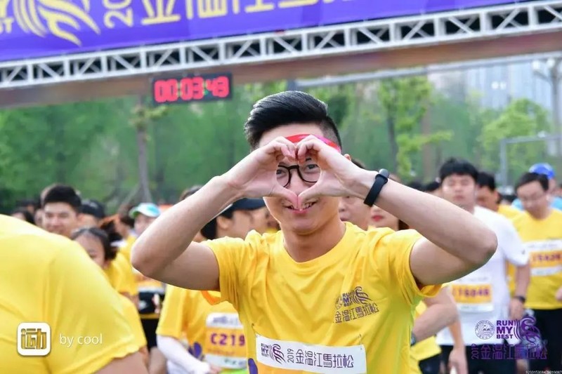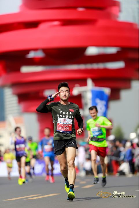 动作:敬礼、比心、专注跑步、竖大拇指,单手举起等根据自己的情况,展现个人风采;如果没有特别的动作,忽略镜头,认真地跑步也是不错的选择;谨慎采用的动作:张开双臂的动作,竖画幅的照片容易裁切手臂,也会遮挡别人。