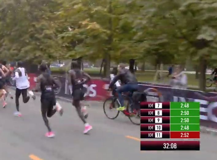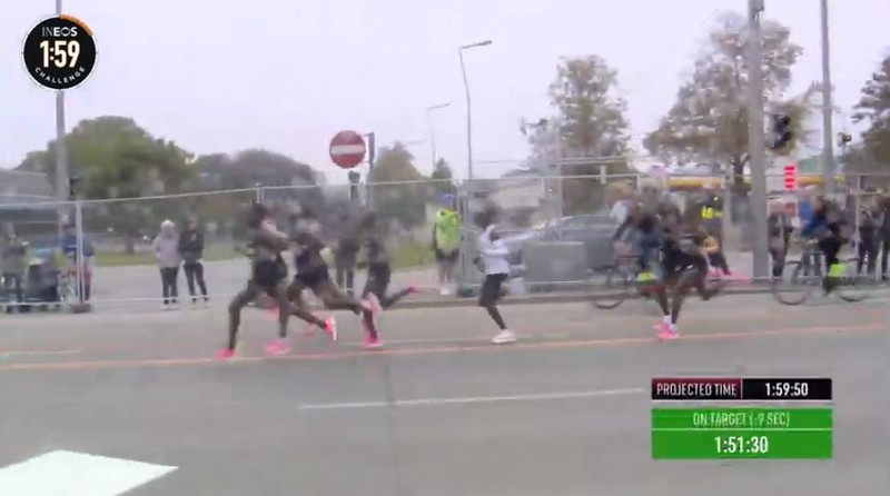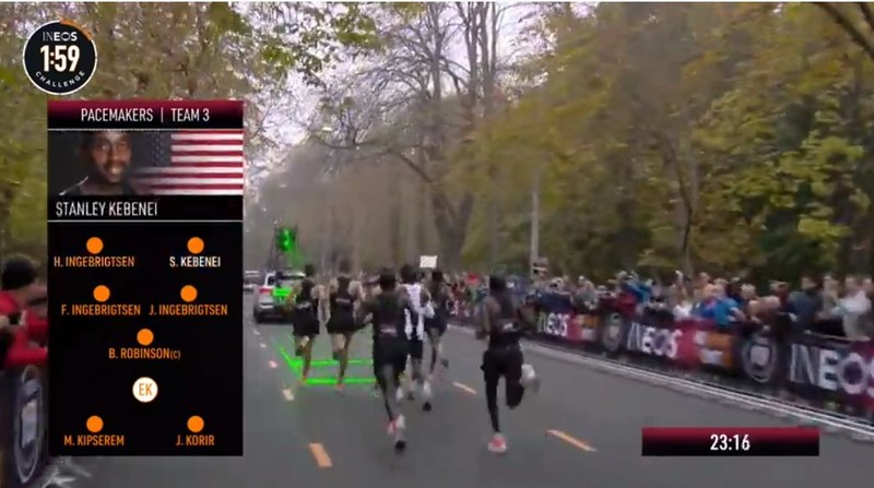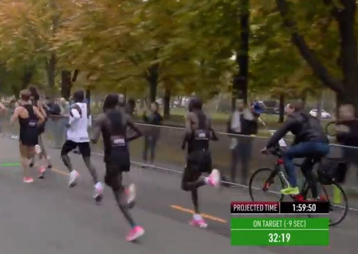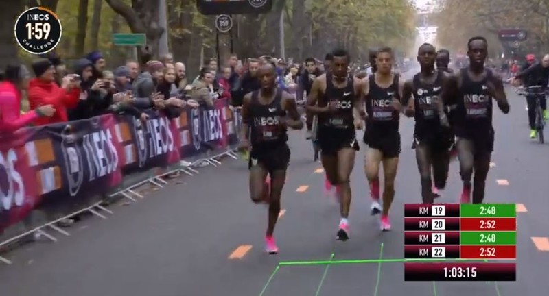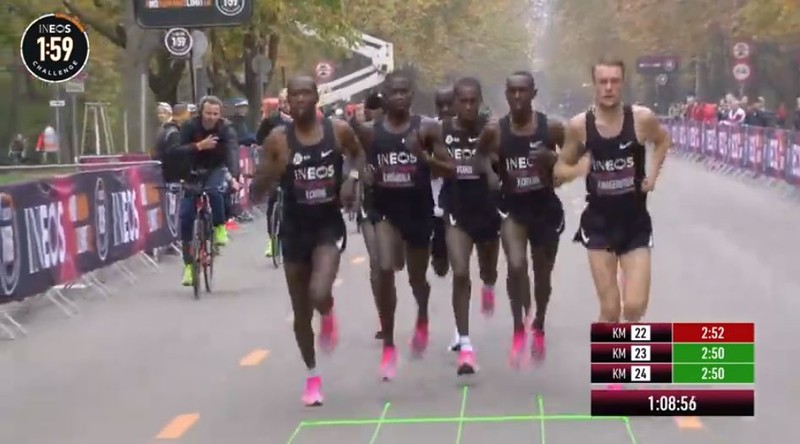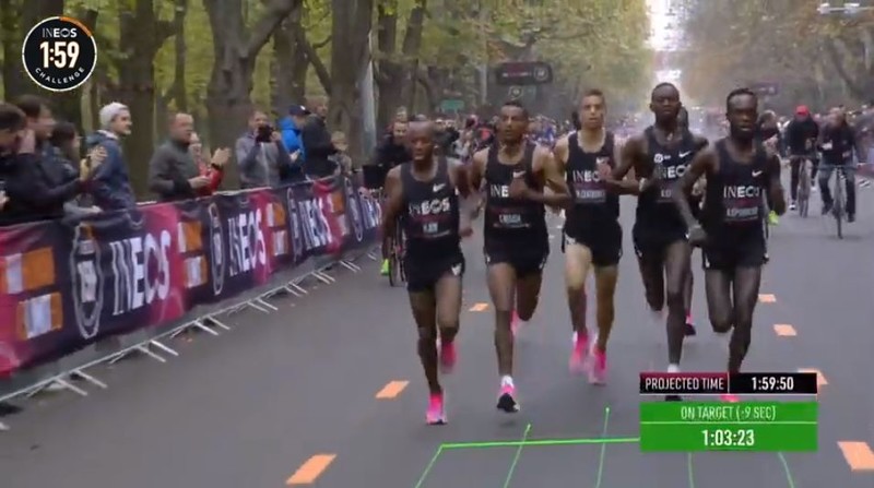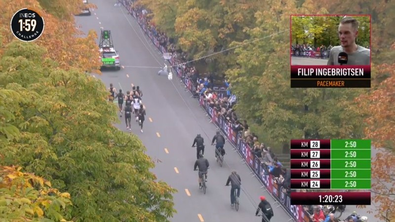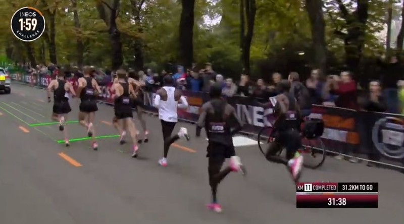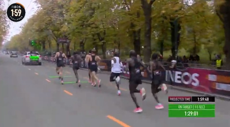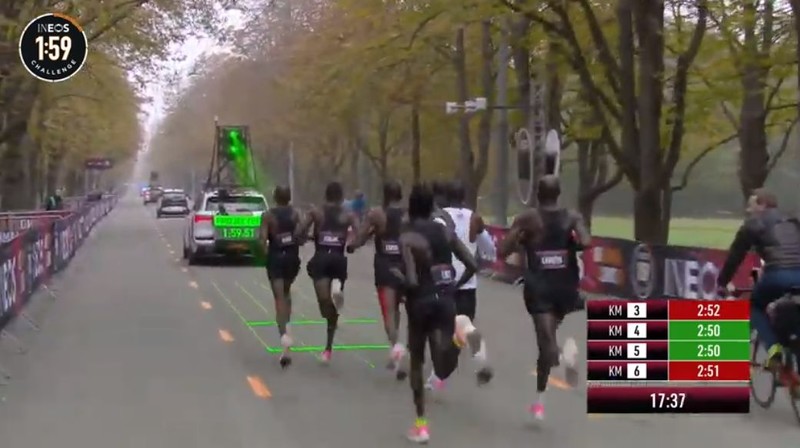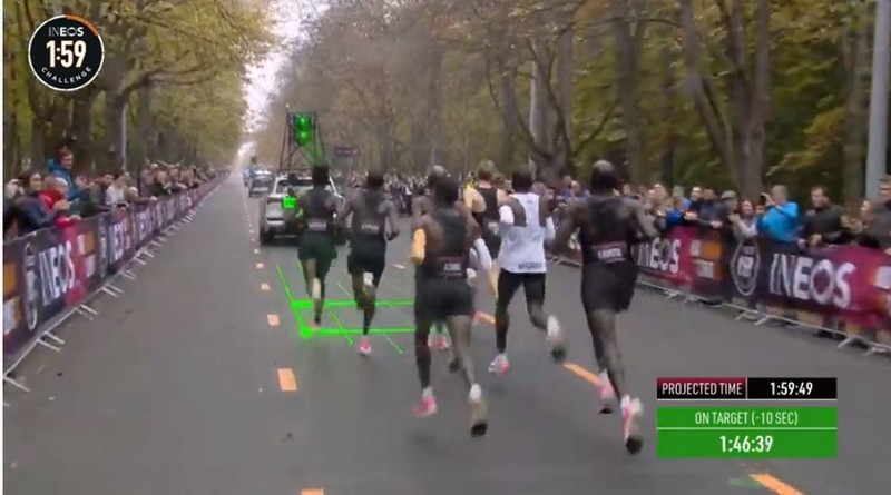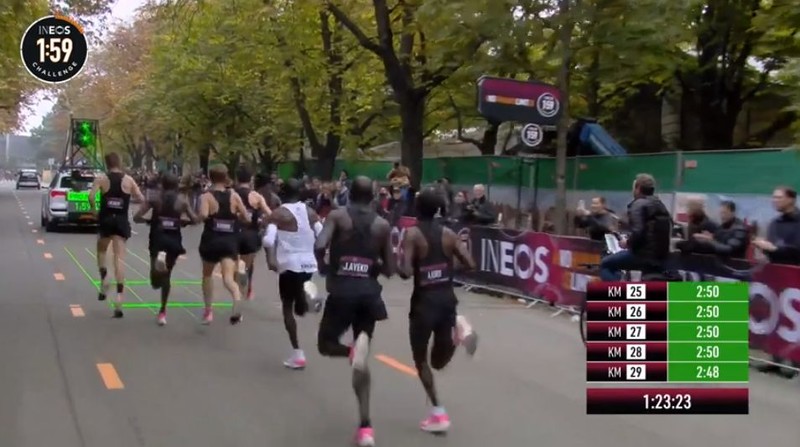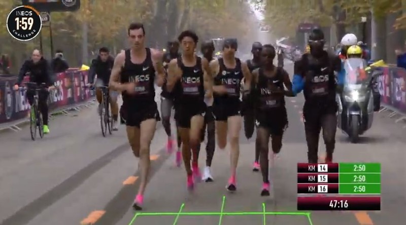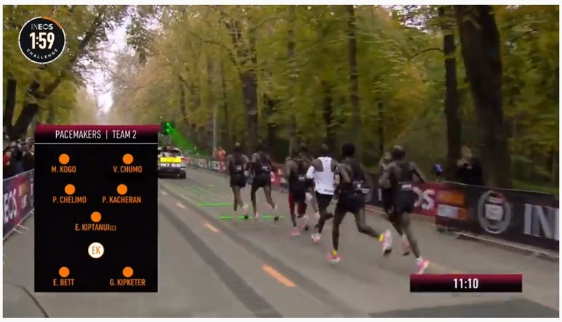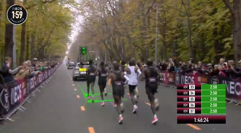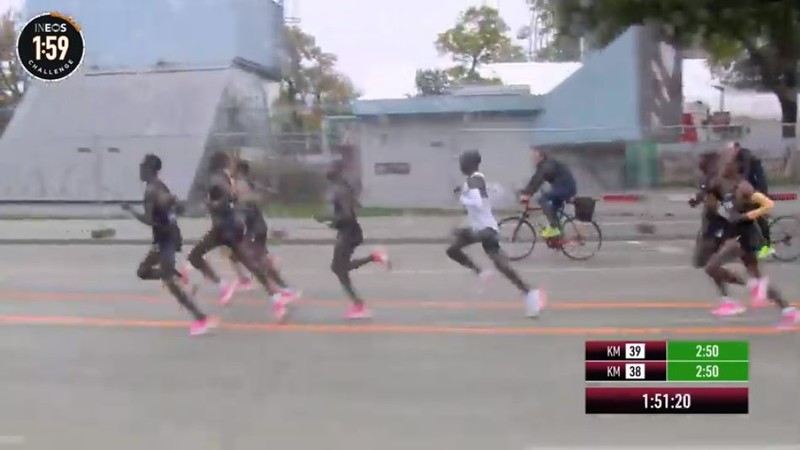 时间拨回到2017年5月6日凌晨2点25分,意大利蒙扎F1赛道上,基普乔格开启了人类首次对马拉松2小时的挑战,命名为“Breaking2”。最终,虽然基普乔格距离人类跑进2小时大关仅仅相差26秒,但还是失败了。
