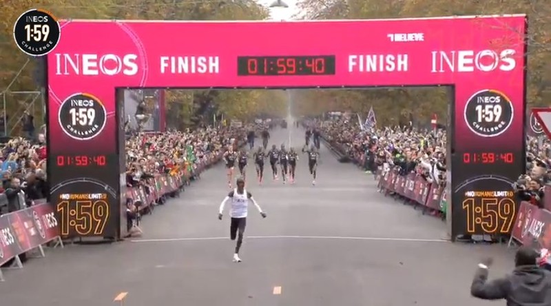 最终基普乔格以1小时59分40秒的成绩冲线,实现破二!