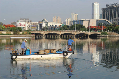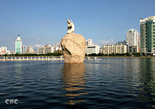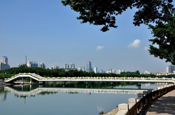 筼筜湖位于厦门市区,原与大海相通,后为了变沧海为良田,筑起长堤,遂成水域面积1.7平方千米的内湖。湖泊的中央是美丽的白鹭洲,鲜花、绿树、青草、曲径映衬着幢幢现代建筑,环着员筜湖。