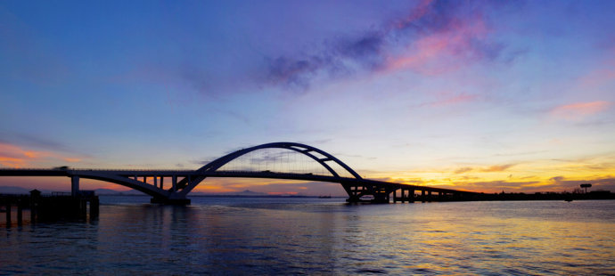 因沿湾无车辆,适合任何时段跑步,沿五缘湾跑一圈,总的路程差不多9.5km,湾的两侧共有五座圆拱桥相连接——月圆桥、天圆桥、人圆桥、地圆桥、日圆桥,形成了“碧波映五桥,平岸草如烟烟”的美丽景色。因有五桥相连,人们可以根据情况选择其中一段过桥,随时可以就近加入或者退出训练。