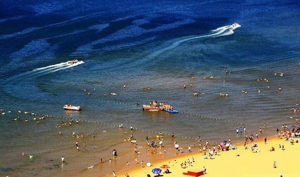 威海国际海水浴场位于威海市的西海边,海滩东西长2800余米,这里沙滩绵延宽展,坡度平缓,海沙颗粒晶莹,细致均匀,没有一点杂质,这里特别适合沙滩排球、沙滩足球等体育运动。因为在沙滩上,牵手跑起来可能比较费劲,但有海风、浪花和爱人相伴,也是别有一番滋味。