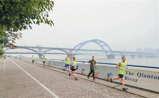 从钱江一桥到钱江四桥,沿江堤,一路往前跑,不用回头,一望无尽是钱塘江滔滔江水,跑到微微出汗,适合健身跑,当然如果你还能继续跑,还可过四桥到对岸绕回一桥。