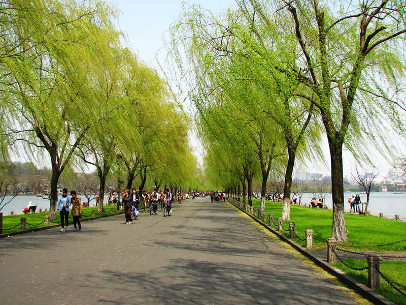 地球是圆的,西湖也是圆的,顺时针逆时针跑都ok。但是这里的传统是顺时针路线的开始,因为渐离市中心,如不是假日黄金时段,游人稀少,非常适合跑步。如果从柳浪公园里面跑,虽然亲近西湖,但是没个熟人带路,七拐八拐的曲径通幽还不知道通到那里去,算了,还是安单点沿着公园外围的人行道跑吧,参天的古树,开阔的道路能并跑数友,开跑慢脚步当热身,熟人三三两两,七卦八卦,拉呱唠嗑,偶尔瞟一眼影影绰绰的西湖水,想起刚学的杭州话才仙钓木郎。