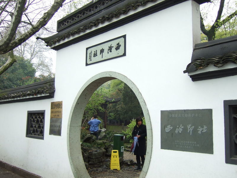 跨过西泠桥,右手沿湖大道通车,顺着跑经过楼外楼,西湖美术馆等,但车子杂,不甚安全,所以我们一般从西泠桥下左手拐入中山公园的小径,曲曲折折倒也考验反应,只是石板路不太好跑。中山公园入口右手就是一个洗手间,跑了5、6k有那种意思了,可以去放松一下。杭州的厕所,全五星,也算是一大特色。跑着跑着如果有看到上山的台阶,有兴趣可以上去看看,西泠印社即在上面,有个屋子锁着汉三老石碑,山壁游廊上随处可见名家名字名印。吴昌硕的石鼓文,是我最爱。