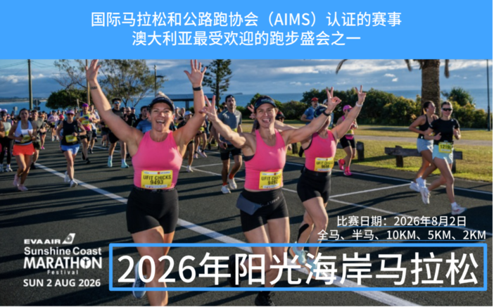 2026年阳光海岸马拉松直通名额比赛时间:2026年8月2日比赛城市:澳大利亚 昆士兰报名截止日期:2026年7月20 日(额满为止)国际马拉松和公路跑协会(AIMS)认证的赛事澳大利亚最受欢迎的跑步盛会之一一、推荐理由为 “刷新 PB” 而来:专业赛道 + 黄金气候,成就你的最佳时刻​对于渴望突破自我的跑者而言,阳光海岸马拉松堪称 “PB 加速器”。2025 年起采用全新单圈赛道,起点和终点均设在亚历山德拉岬角。赛道主要沿平坦且快速的...